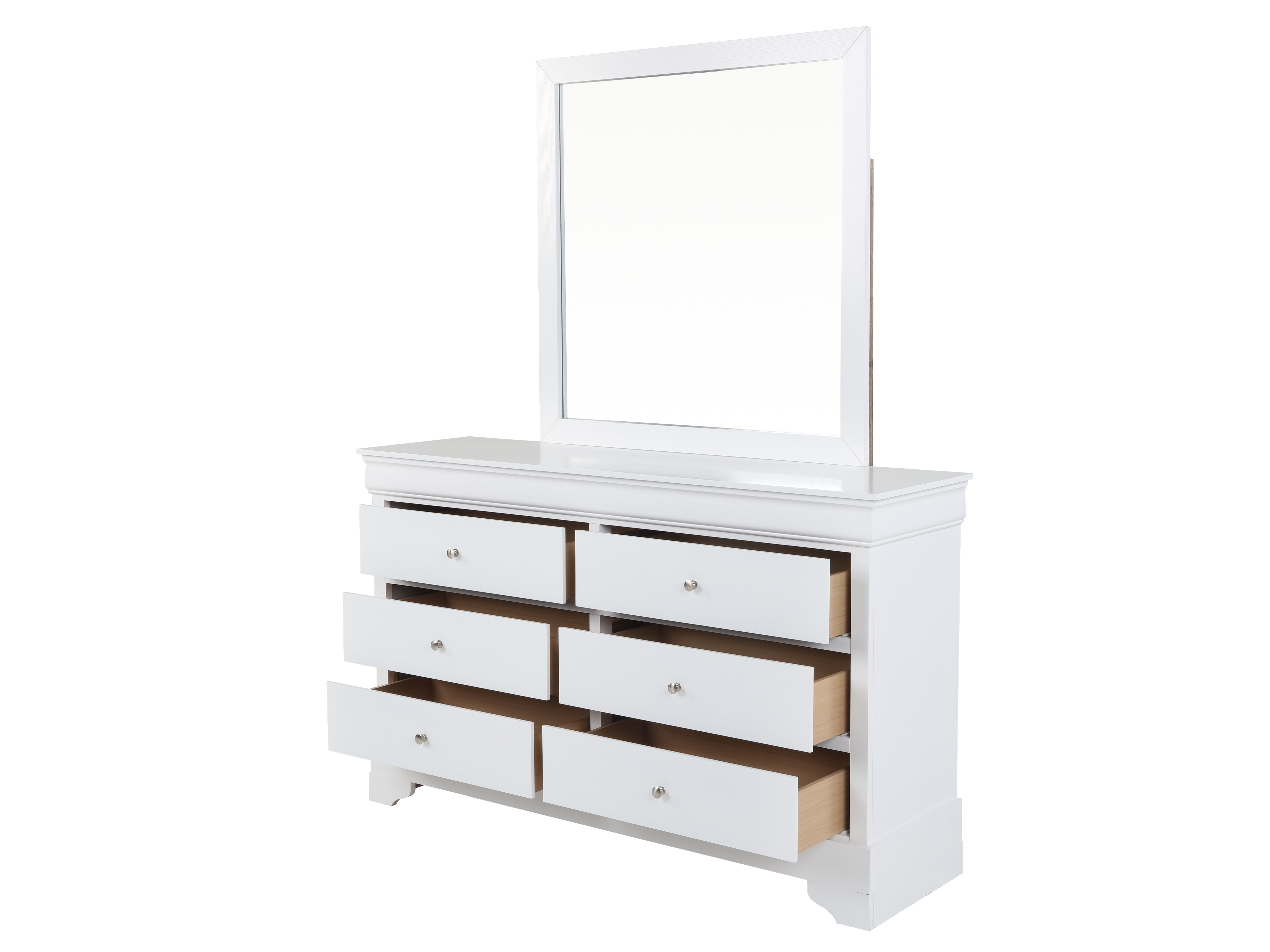 6-Piece White Bedroom Set with Dresser, Mirror, and Nightstand