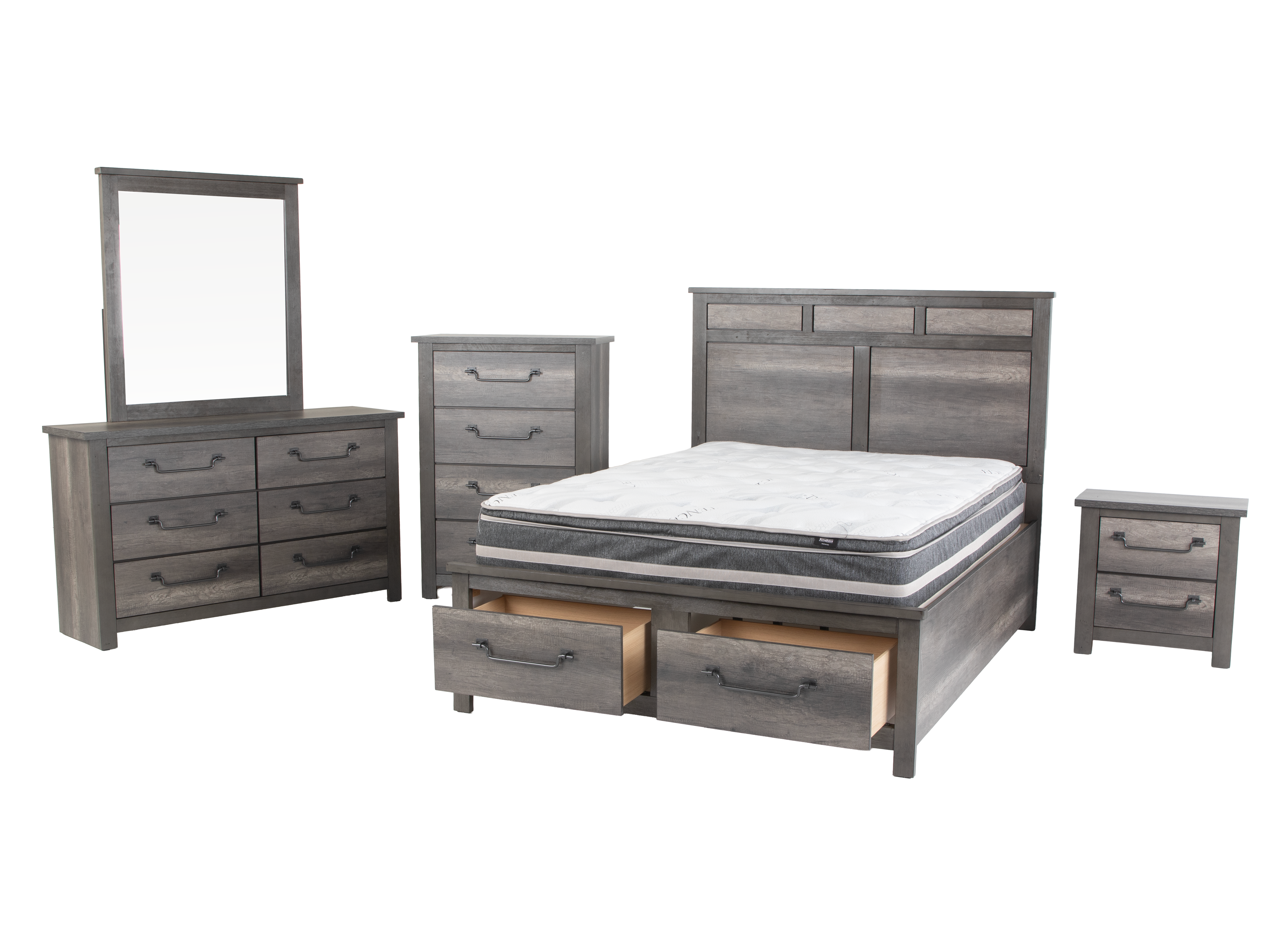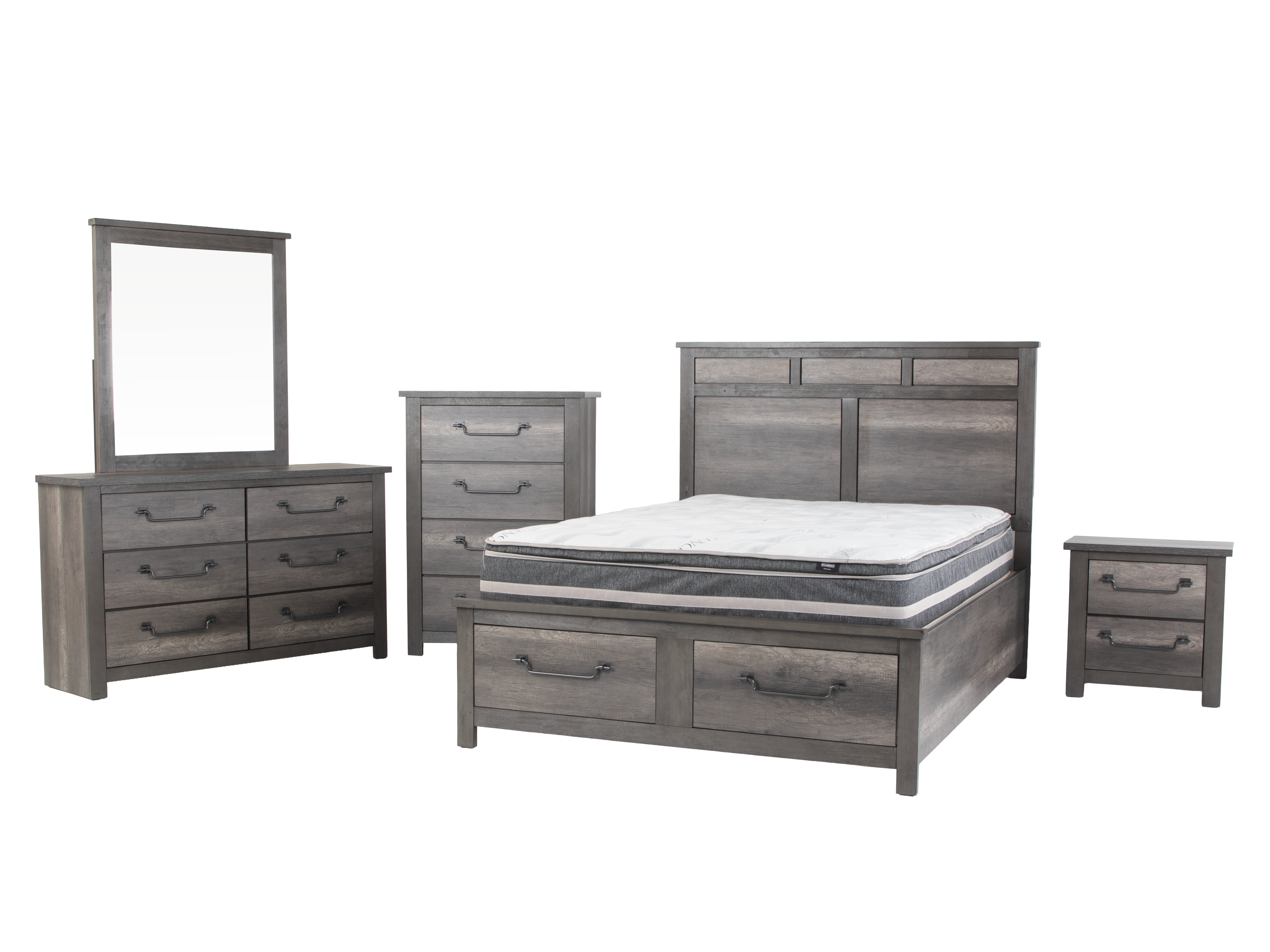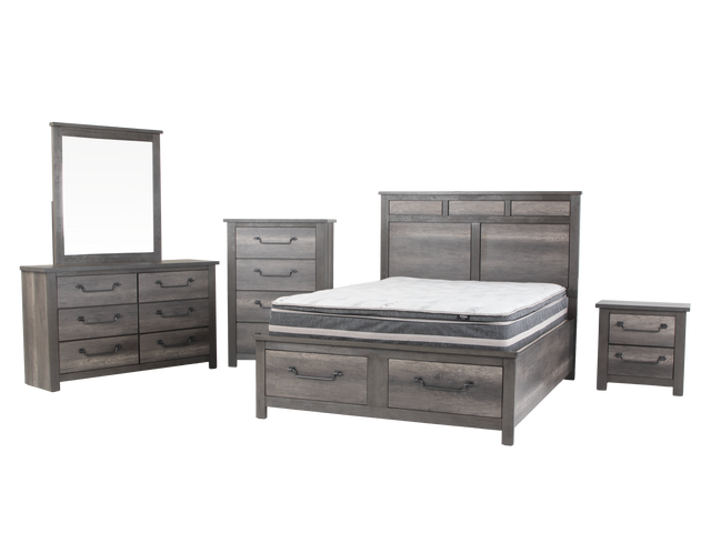 Gray Panel Storage Bedroom Set with Dresser, Mirror, & Nightstand