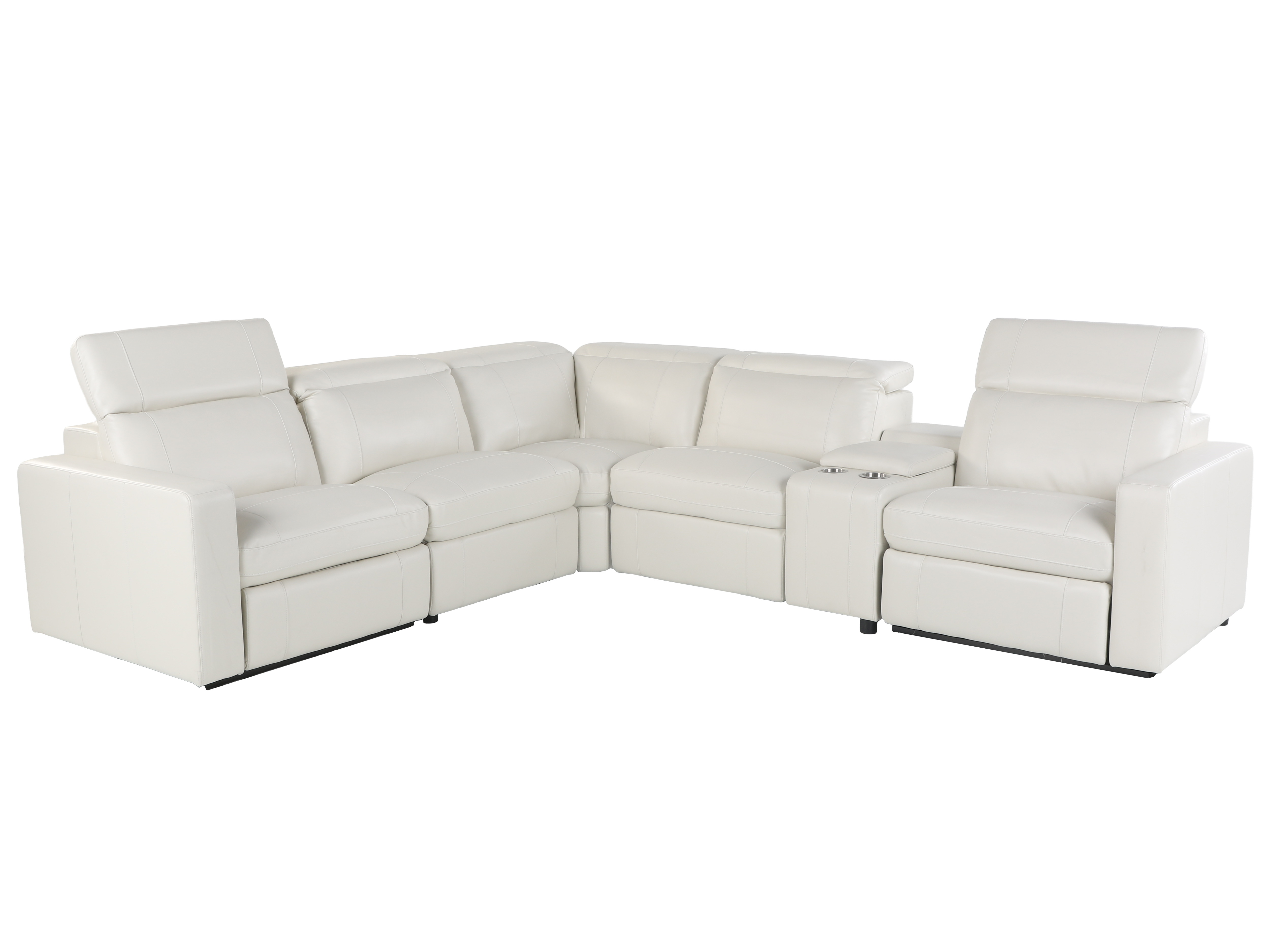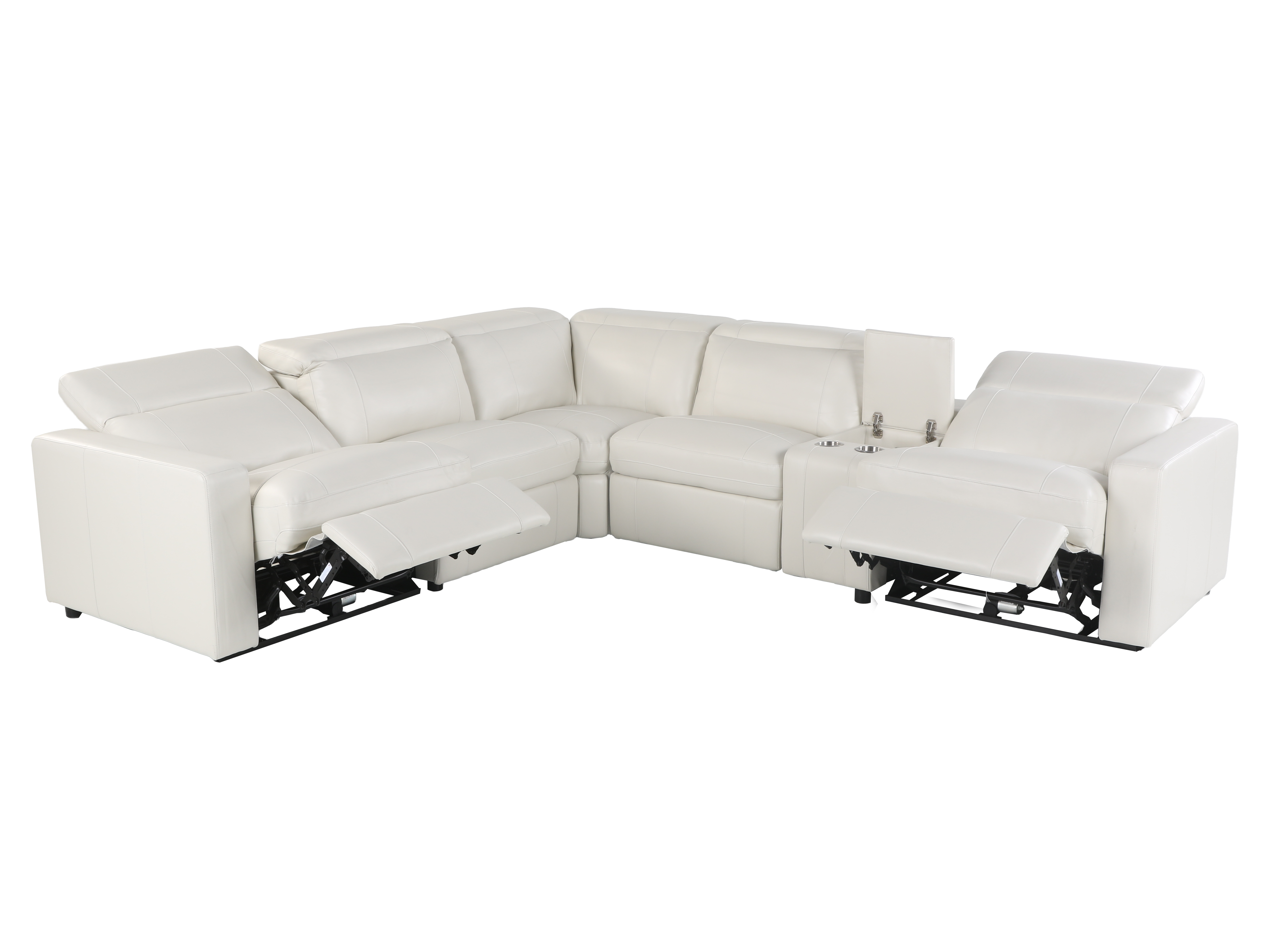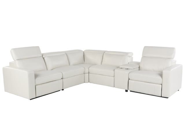 Experience modern luxury and supreme comfort with this Power Reclining Sectional. Upholstered in elegant, easy-to-clean white leather, this sectional combines sophisticated style with ultimate relaxation.