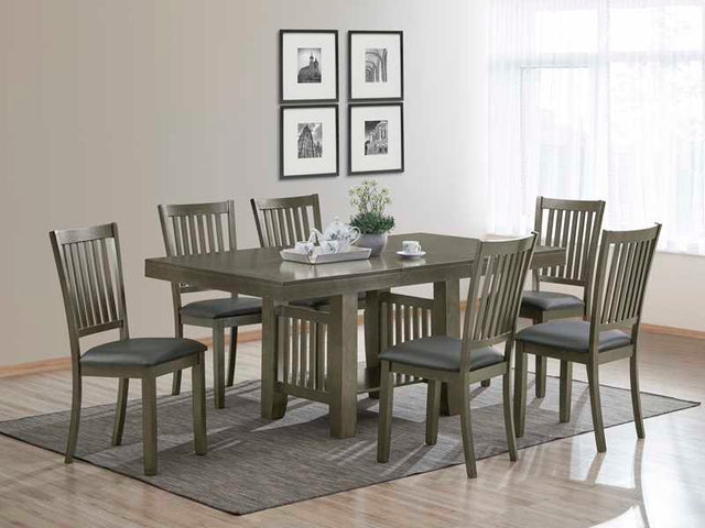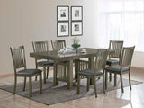 Enhance your dining space with this versatile 7-piece standard-height dining set, designed for both style and functionality. Featuring a grey finish, a built-in butterfly leaf extension, and a timeless slatted-back chair design, this set is perfect for both everyday meals and special gatherings.