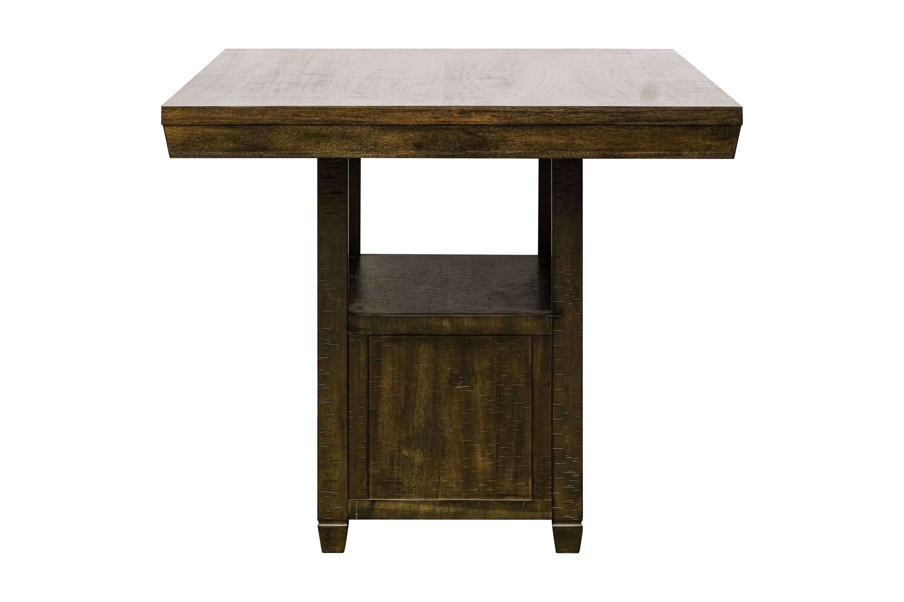 This 7-piece Pub Dining Room Set offers a pub-style dining experience with a 2-door storage table and six counter-height chairs. The table top is crafted with solid rubber wood for reliability and durability, while the chairs provide cushioning for added comfort and support. This set is ideal for the home or office.