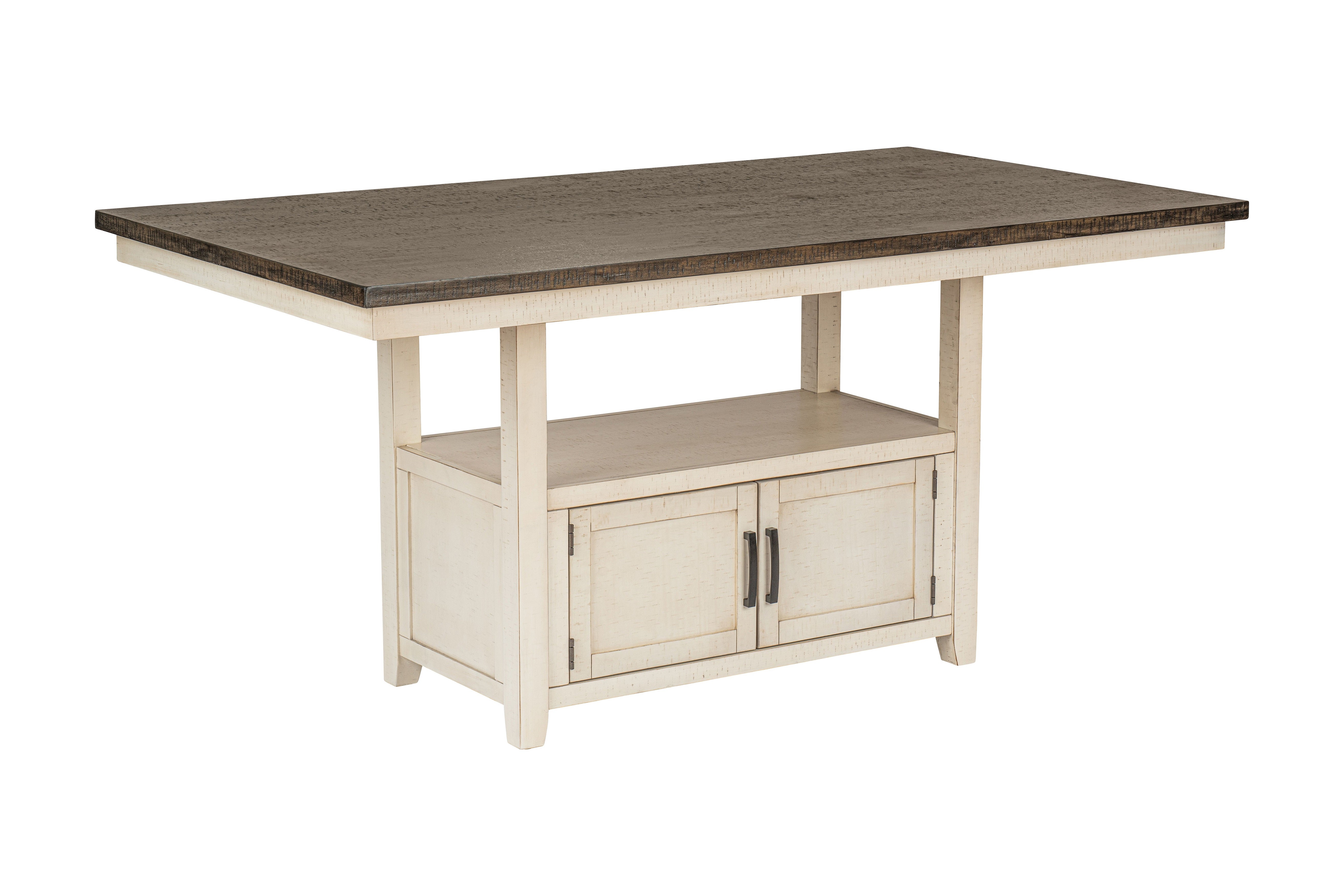 - Counter height Dining Table provides plenty of dining surface AND storage with a two-door base compartment with a shelf.