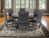 7-Piece Round Rustic Dining Set with Rivet-Trim Chairs (Gray/Charcoal)