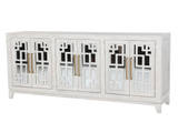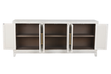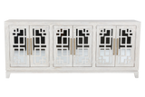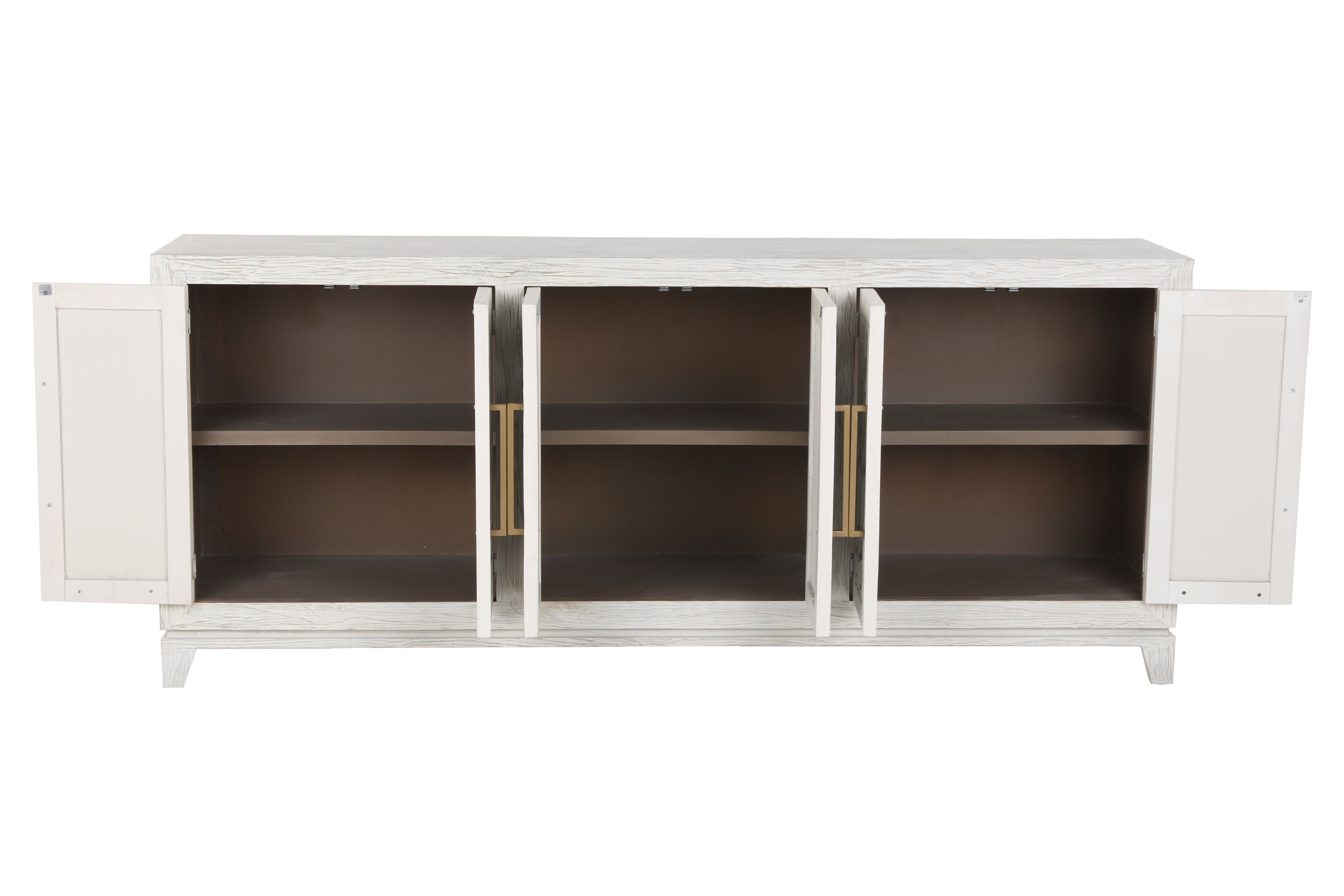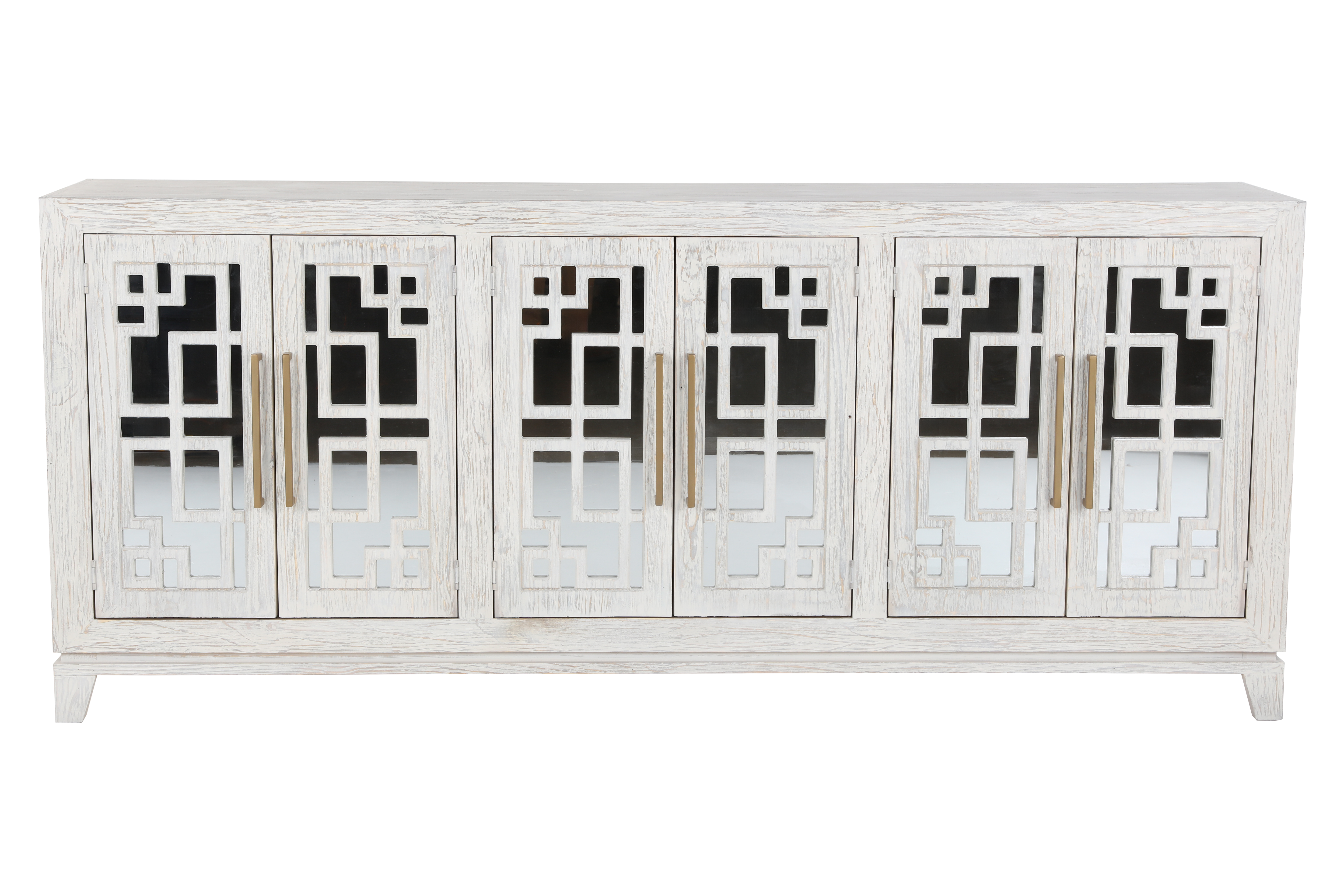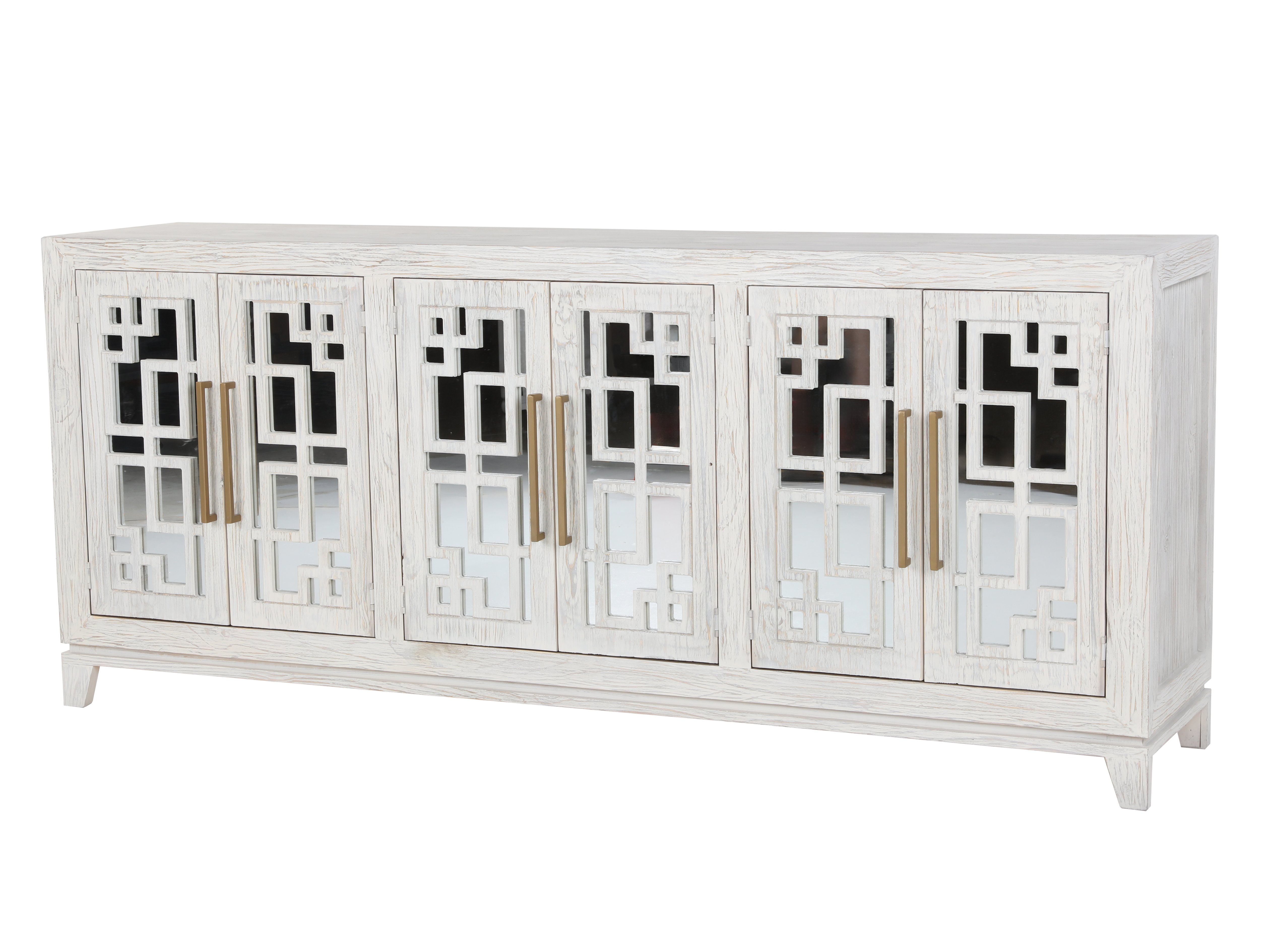 This stylish TV console is the perfect addition to any modern living room. The clean lines and whitewashed finish create a sophisticated look, while the mirrored doors add a touch of glamour. The four shelves provide ample storage space for your media and decor.