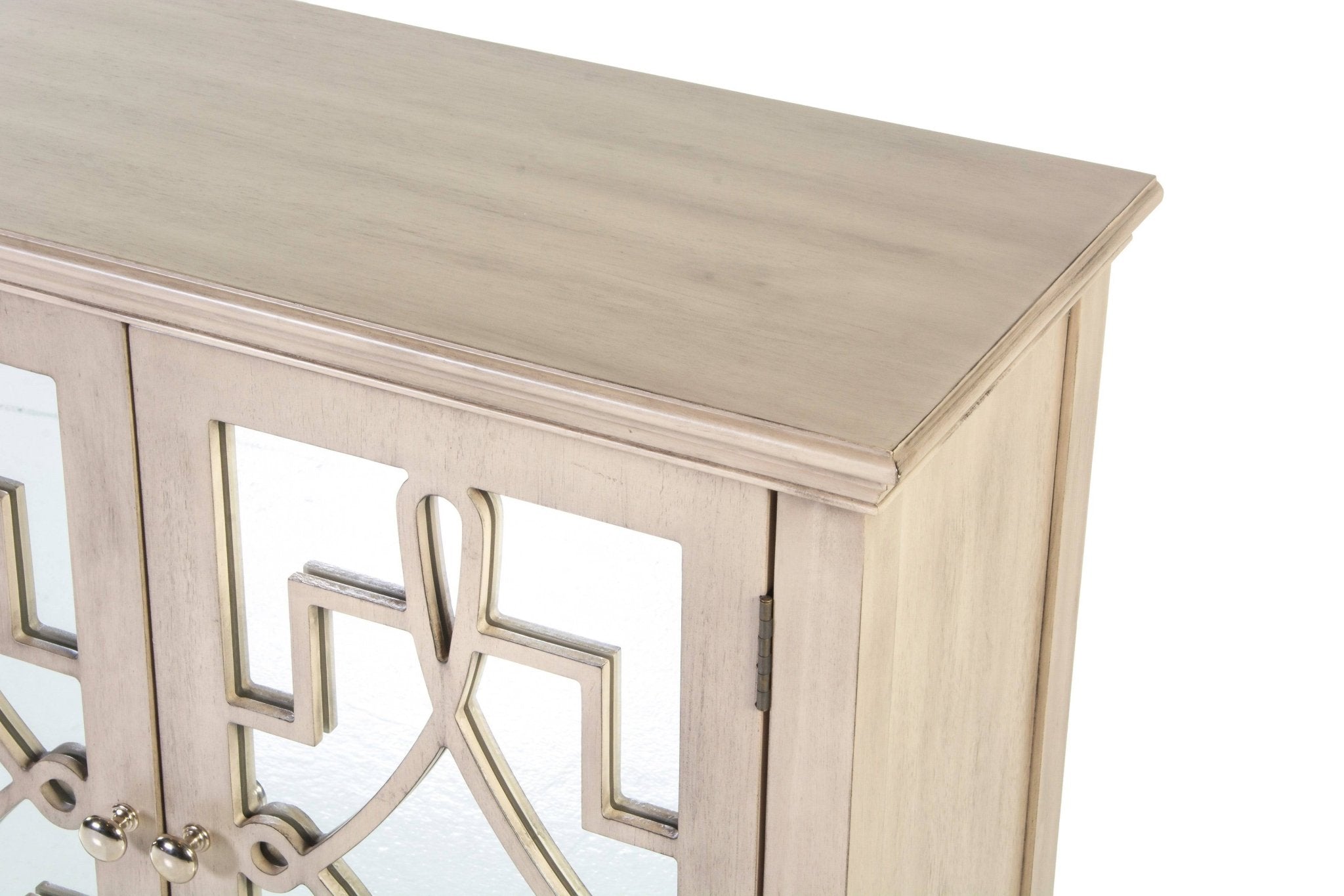 This 2-door accent cabinet is constructed of quality hardwood and comes in a nice light grey color that can be paired with any style and color of the furniture in the bedroom, dining room, or bedroom.