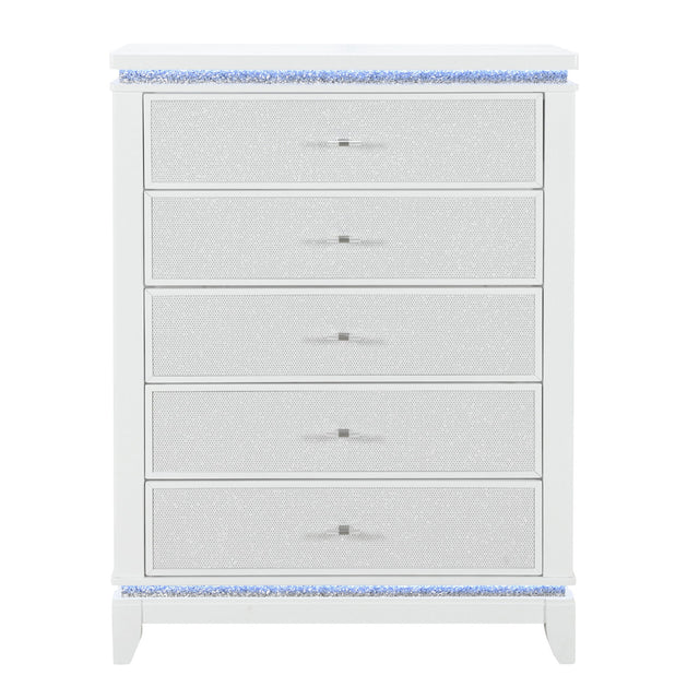 • Elegant Design: Features a chic white finish with glittered drawer fronts for a touch of glamour.