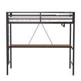 Adam - Twin Loft Bunk Bed With Cinnamon Wood Desk And Closet Rod - Black