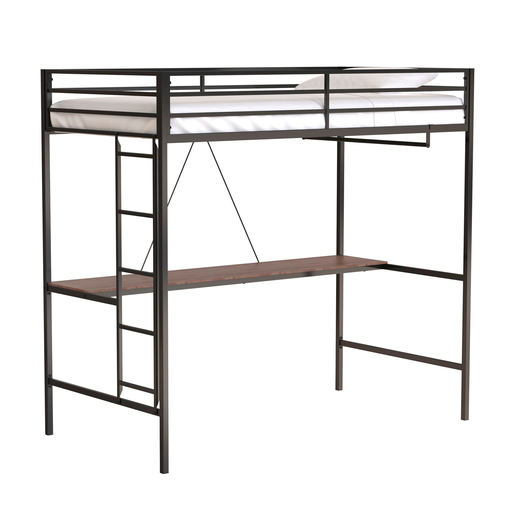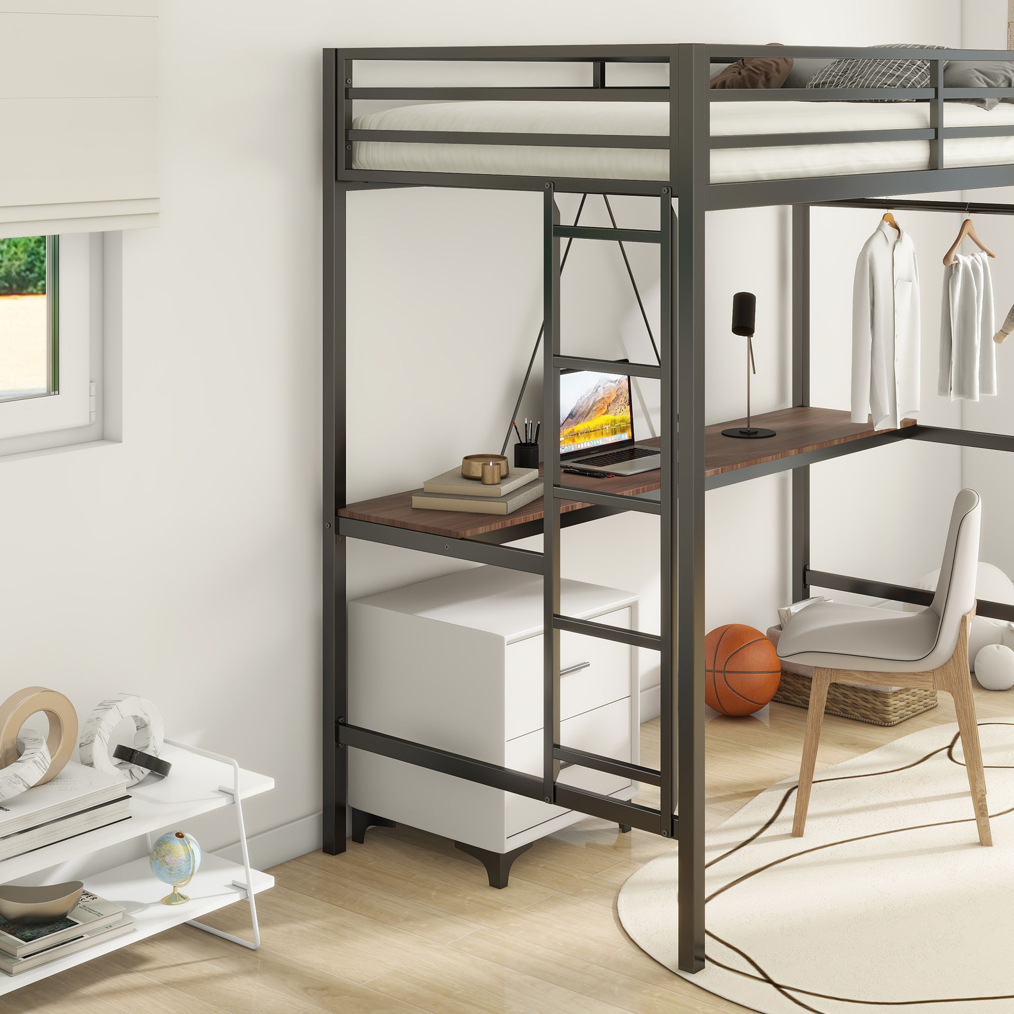 Adam - Twin Loft Bunk Bed With Cinnamon Wood Desk And Closet Rod - Black