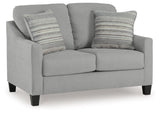 Simply chic comfort. This loveseat’s versatile character is instantly at home where you are, whether your space is casual or contemporary. With the look of suede velvet, you get the ultra-clean, tailored look you love. How’s that for refined relaxation?