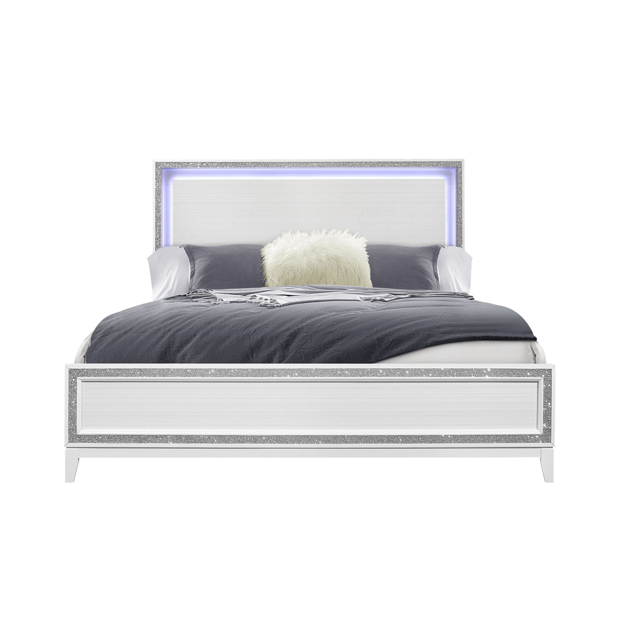 Almera - Queen Bed Glitter - White