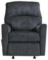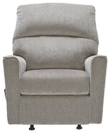 If style is the question, then this rocker recliner is the answer. Clean-lined profile is beautifully contemporary. Plush chenille fabric and plump cushioning make it so easy to comfortably kick up your heels. Richly neutral hue complements a variety of decor.