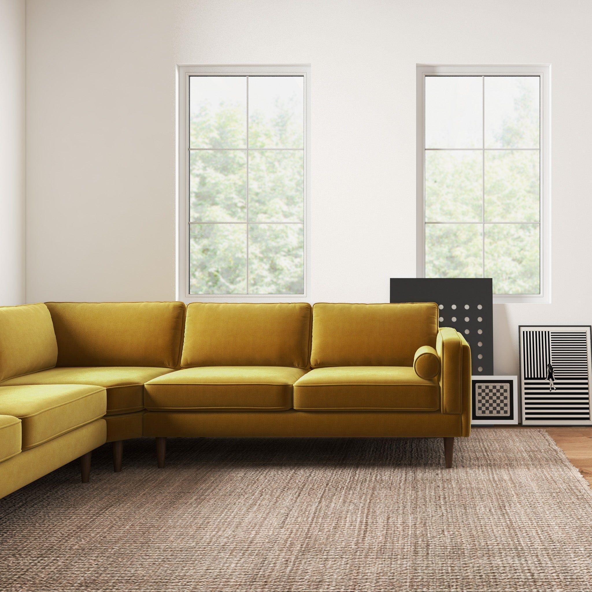 Amber - Velvet Corner Sectional Sofa - Yellow