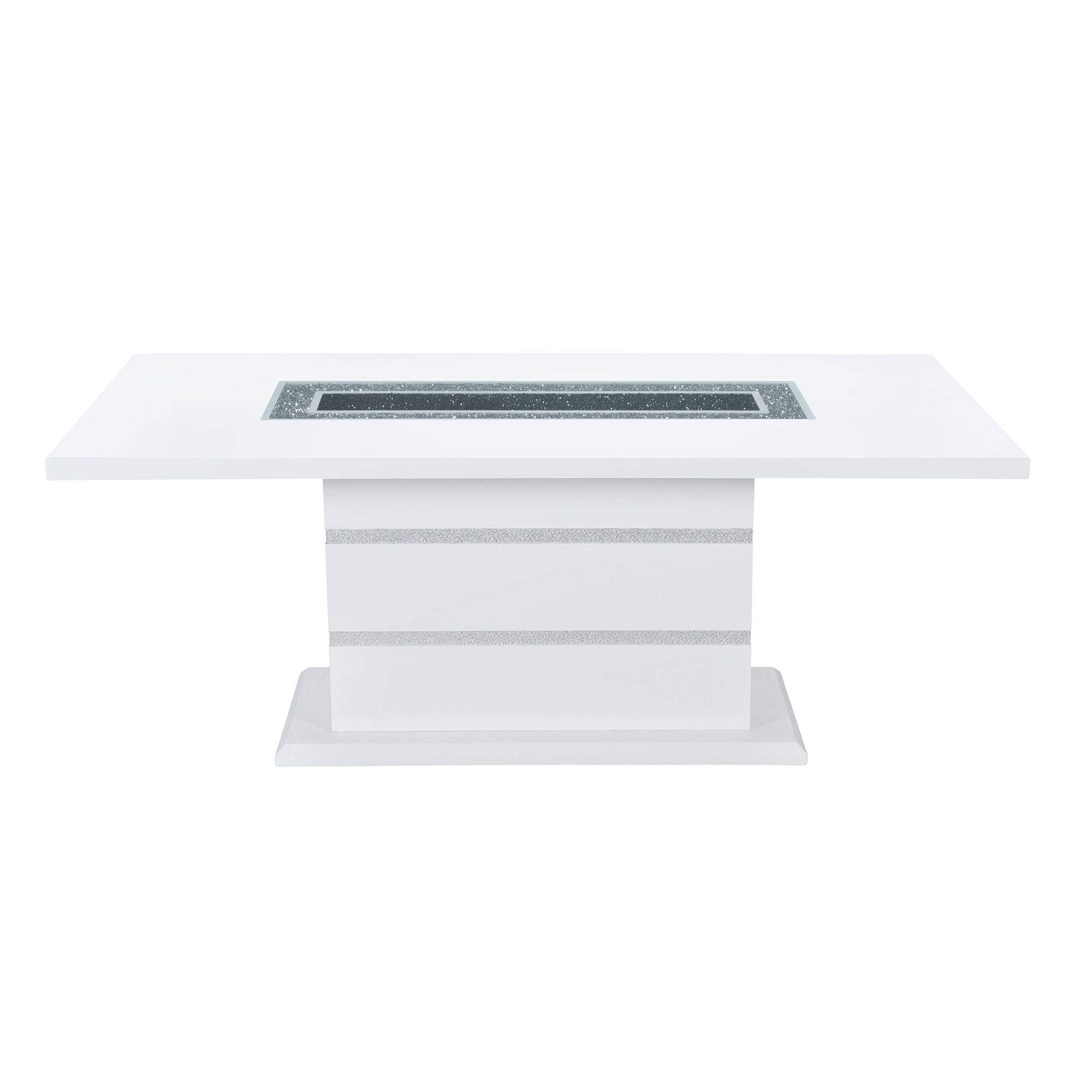 Ariya - Dining Table And Chair Set With Glass Inlay, Square Pedestal Base - White