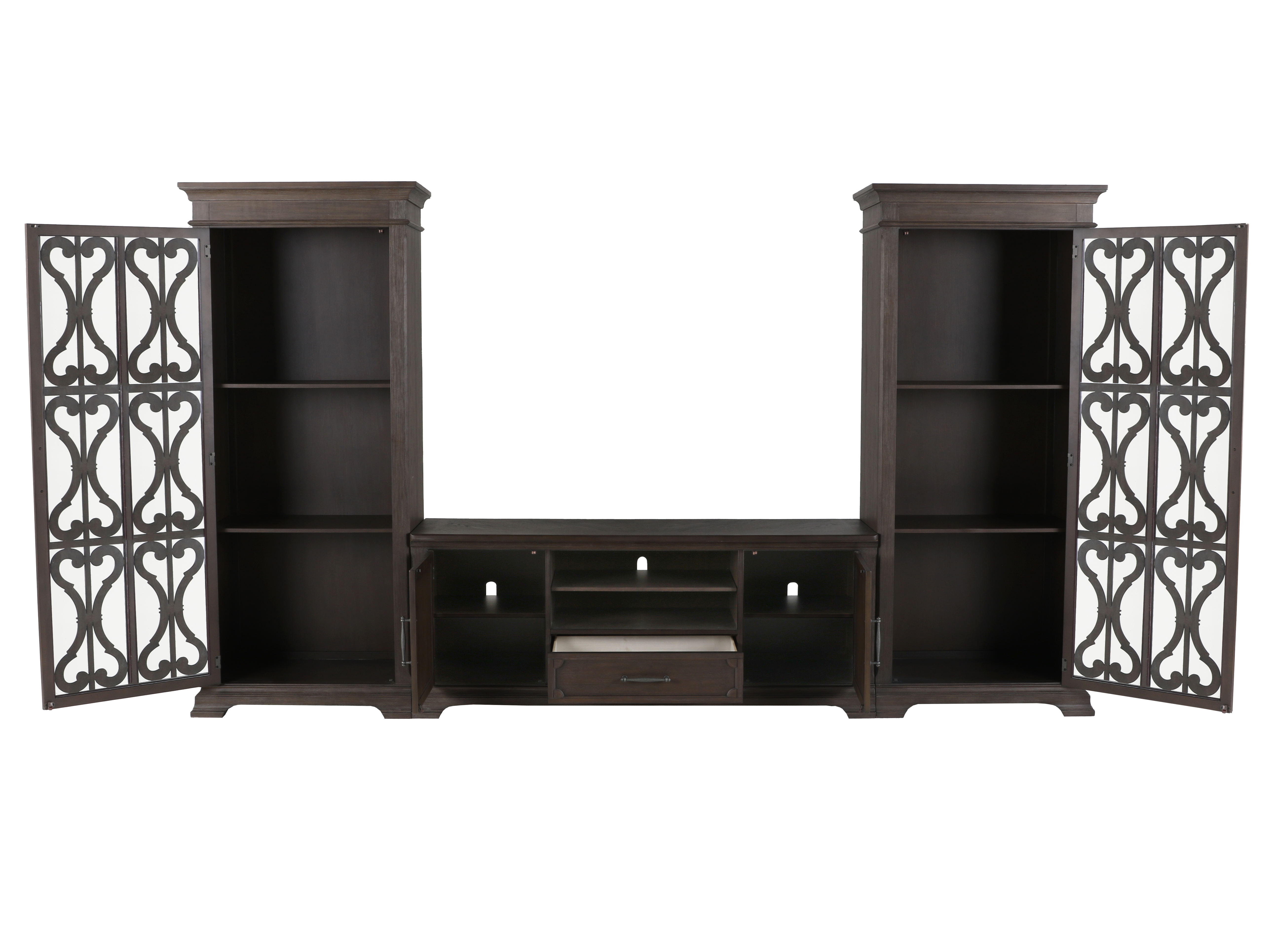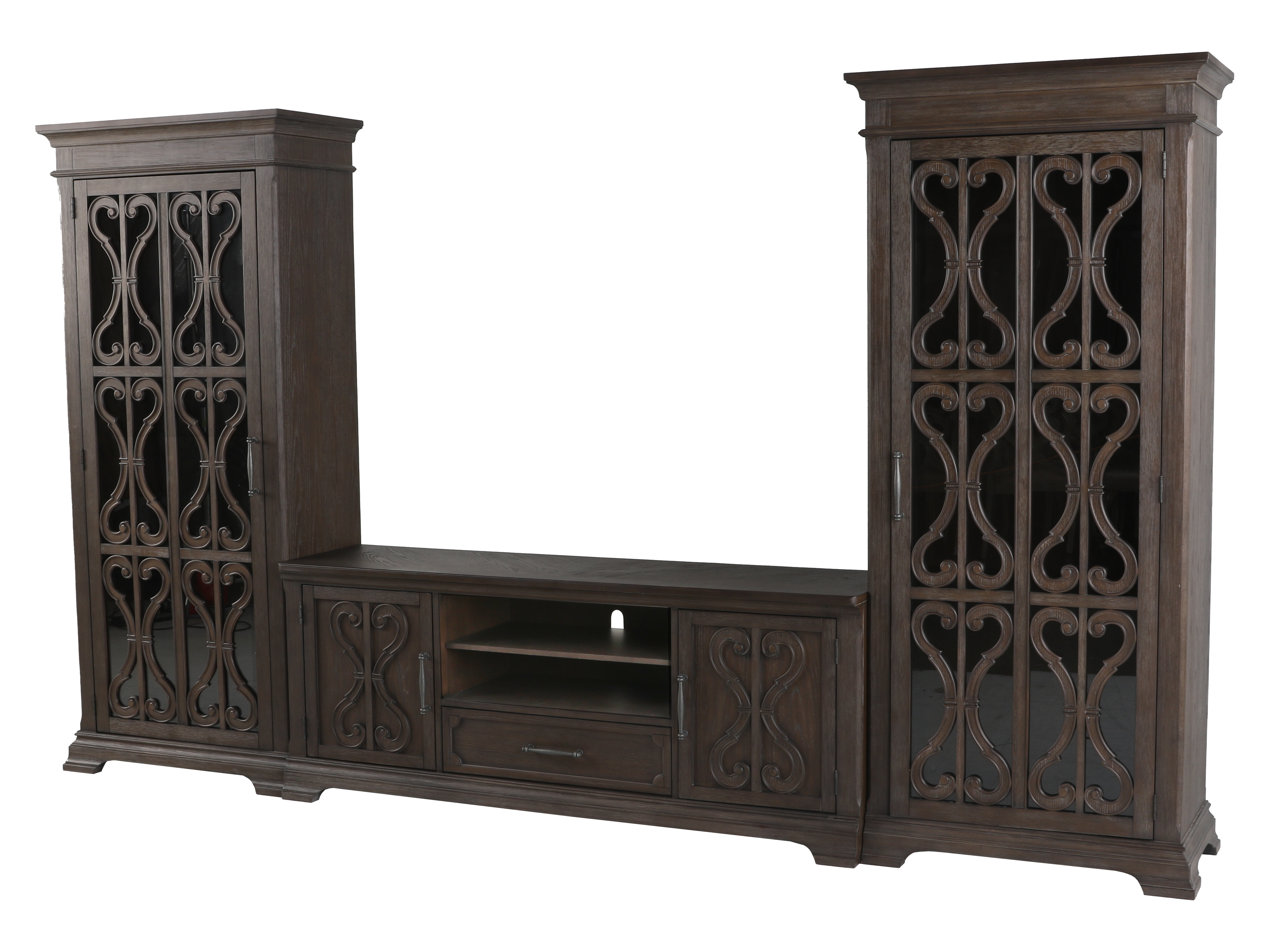Includes: Left and Right Display Cabinet, TV Console.
