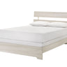 This bedroom collection embodies a rustic, yet minimalist aesthetic with its clean lines and neutral color palette. The set includes a low-profile bed frame, a dresser with a mirror, and a tall chest, all finished that easily complements any decor. The sleek metal handles on the drawers add a touch of contemporary flair, while the large mirror reflects light, making the space feel brighter and more open.