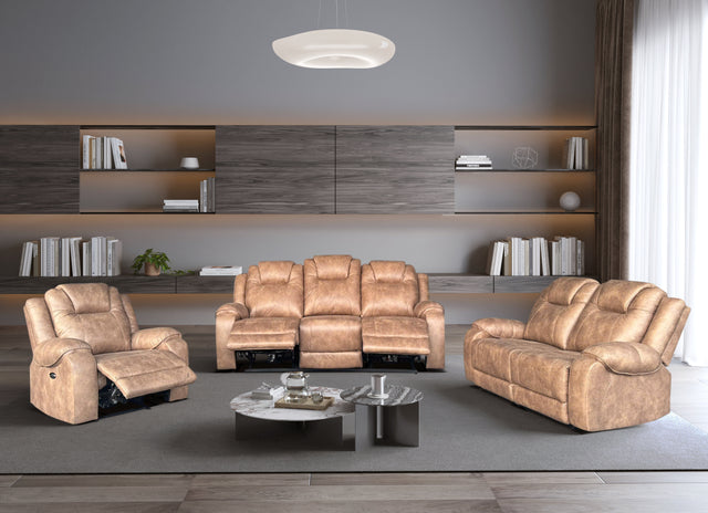 Beige 3-Piece Power Reclining Living Room Set (Sofa, Loveseat & Recliner)