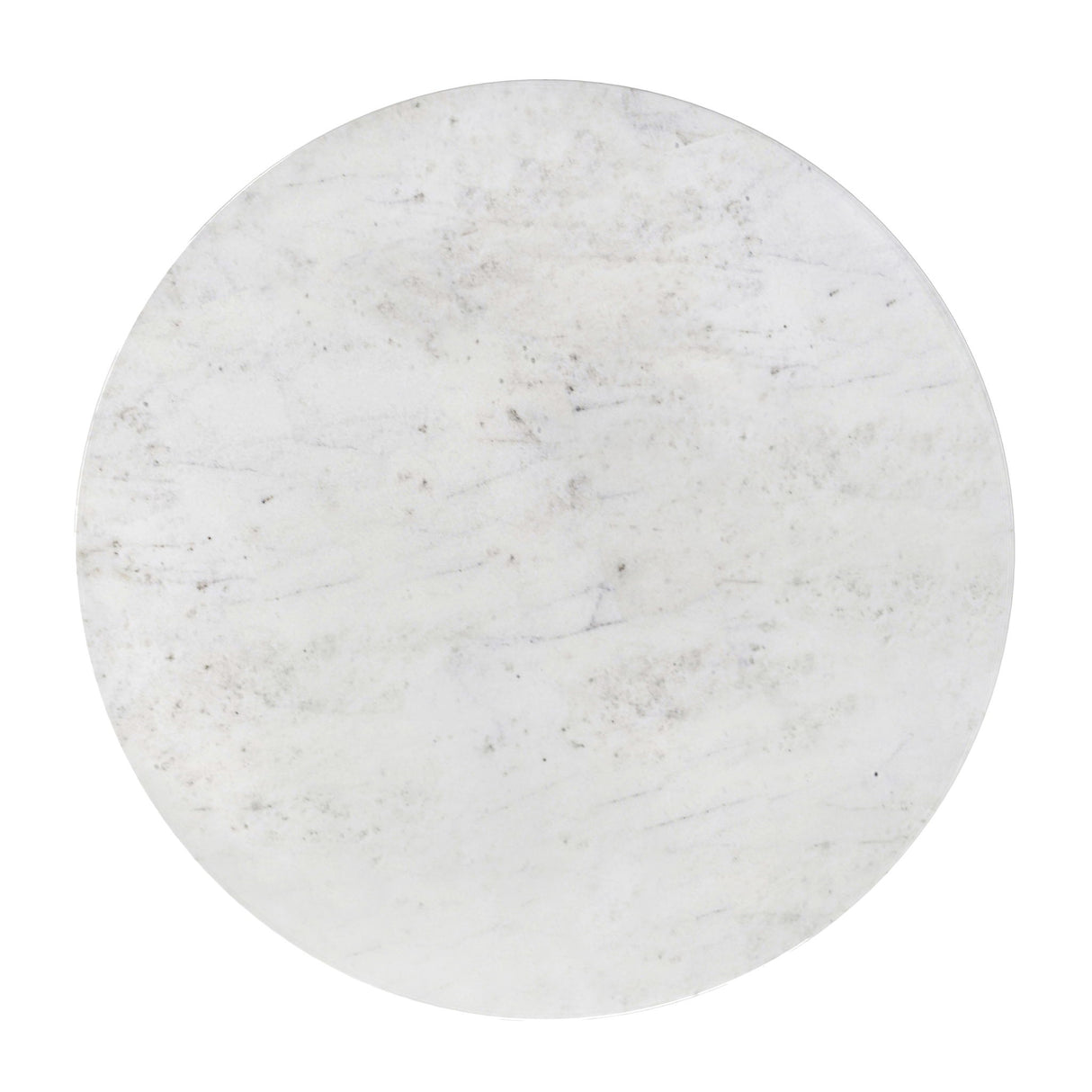 • Hand-finished base in Antique Brass and White Marble tabletop.