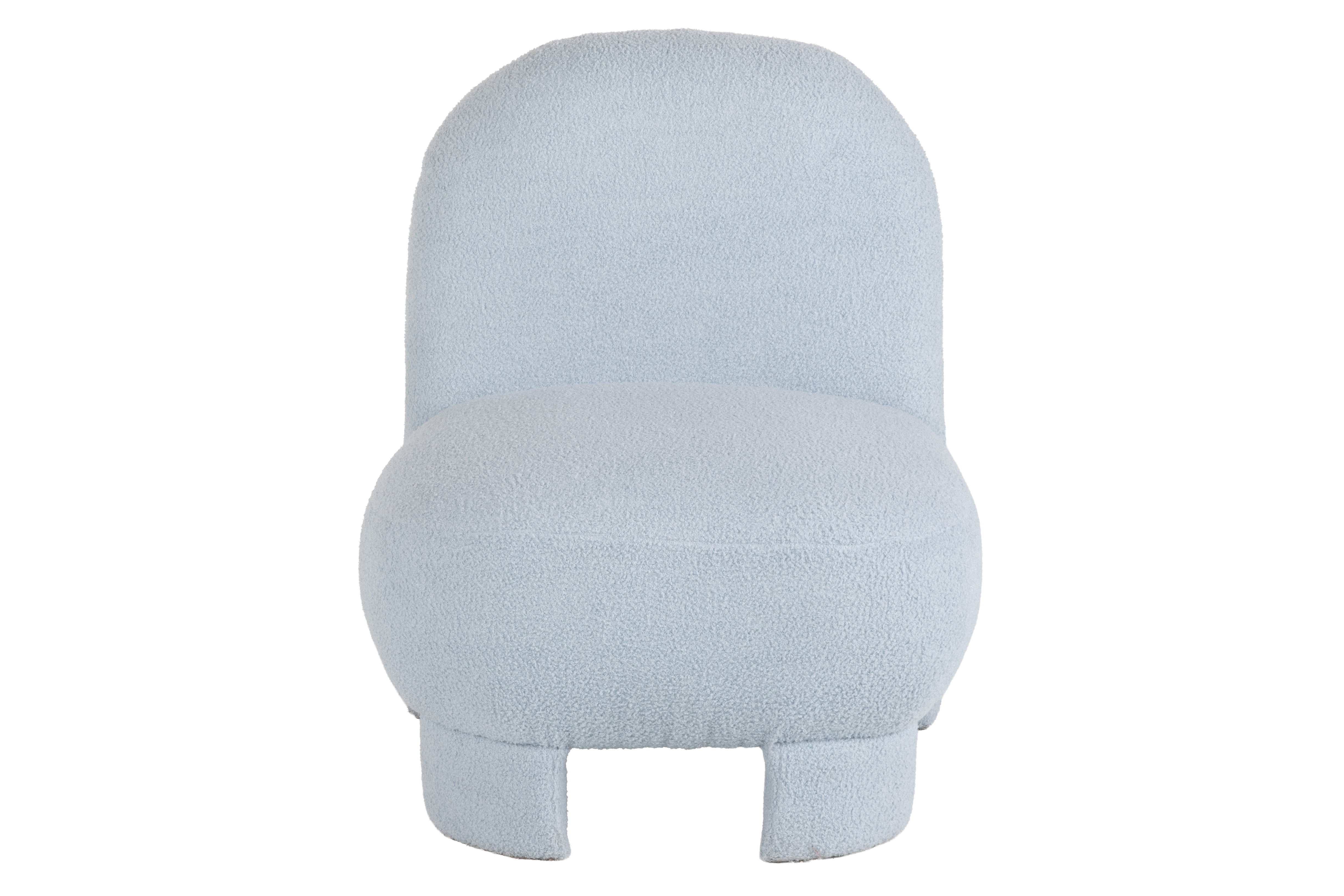 Add a soft pop of color to your space with this light blue bouclé accent chair. Its rounded, armless silhouette keeps the look clean and modern, while the curved back and plush seat create an inviting spot to sit and unwind. The bouclé-style textured fabric gives it that cozy, designer feel—perfect for brightening up a living room corner, bedroom, nursery, or reading nook.