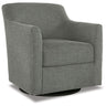 Down with uptown style. This swivel accent chair goes to town with a high-design aesthetic that's temptingly affordable. An ideal way to enhance your lounge space, this chair with a 360-degree swivel base brings casually chic style full circle.