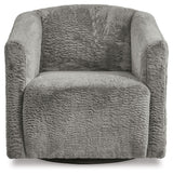 Craft a chic and cozy seating space with this accent chair. The swivel base makes it simple to hop from one conversation to another when hosting. Faux rabbit fur upholstery has a luxe look with a universal appeal. Whether you're serving up charcuterie to lounging guests or curling up with a book on your own, this chair suits your needs in style.