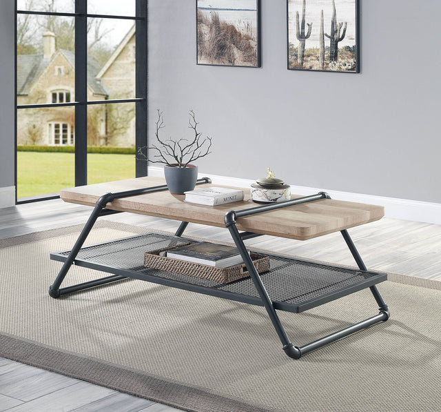 - Stylish Design: This coffee table combines rustic charm and industrial flair with its Oak and Sandy Gray finish, making it a stylish centerpiece for any living room.