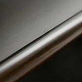 - Transitional design includes rounded molded table top, framed drawers, square,slightly tapered legs and antique bronze classic drawer pulls