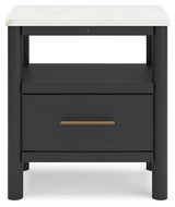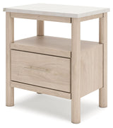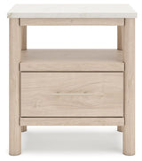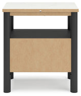 Transform your bedroom with this nightstand. With its clean lines and replicated marble top, it exudes a minimal and sophisticated boho style. Built-in lighting and charging capabilities add simplicity and ease to your everyday tasks. Tailor your space and create the perfect environment for sweet dreams.