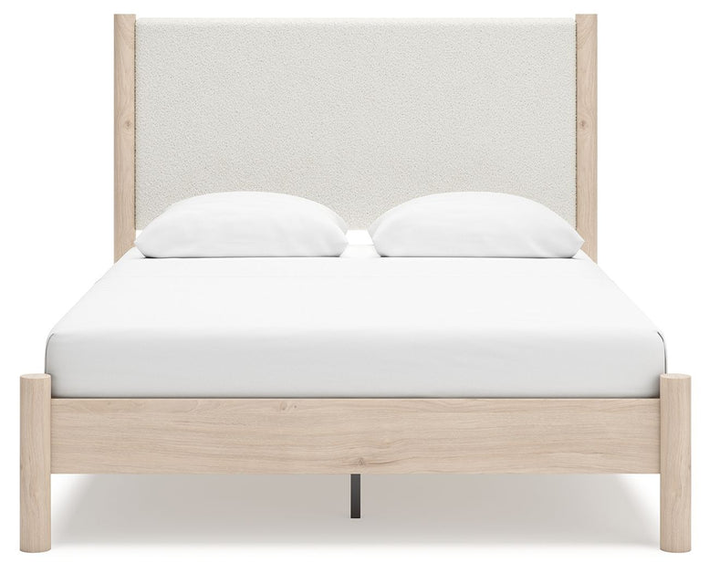 Cadmori - 5 Pc. - Dresser, Mirror, Queen Upholstered Panel Bed - Two-tone