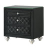Indulge in timeless elegance and dramatic sophistication with this stunning bedroom collection, designed to make a bold statement. The centerpiece features an exquisitely tufted headboard with luxurious upholstery and intricate nailhead trim, exuding opulence and grandeur. Coordinating pieces showcase diamond-patterned tufted accents, mirrored details, and polished hardware, blending classic design with modern glamour. With ample storage and impeccable craftsmanship, this ensemble offers both style and practicality, creating a lavish retreat that embodies refined comfort and striking aesthetics. Perfect for those seeking a bedroom that radiates luxury and charm.