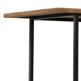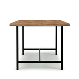 • Made with sustainably sourced solid mango wood, the thick tabletop is constructed with tongue-and-groove panels that create a framed, grid-like pattern.