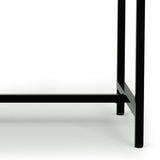 • The base is made with powder-coated iron metal and features square legs and a low crossbar that provides stability without blocking dining chairs from being pushed in.