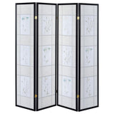 Catabella - 4-Panel Room Divider Folding Shoji Screen Floral - Black