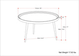 - Features round tray-style top with rim and black metal legs