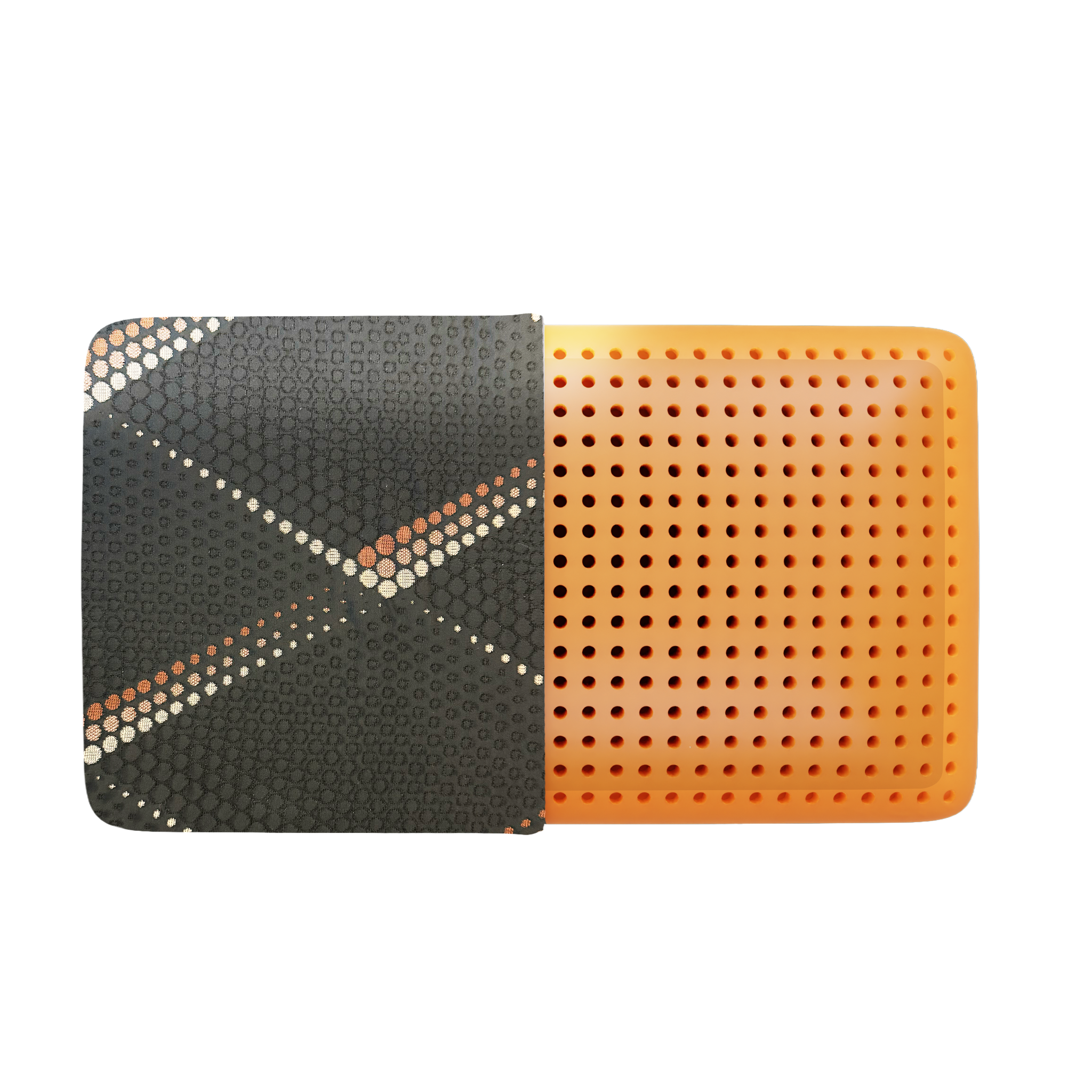 Sleep cooler and wake up with better support. The Copper Ice Regular Pillow pairs a highly ventilated latex core (the orange, perforated layer) with a cool-touch, copper-toned performance cover designed to move heat away and keep air flowing.