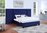 Refresh your master bedroom or guest suite with this stylish bed with wing headboard. This elegant headboard makes a luxe statement with its channel tufting, velvet texture, and chic squared profile. The Upholstered Panel Headboard is covered, soft performance velvet made of stain-resistant polyester and features a solid wood and particleboard construction that's durable and long-lasting. Lean back and relax while reading or watching TV, bed with the dense foam padding on this upholstered headboard.