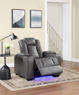 Experience the ultimate in relaxation with the Power Reclining Chair. Upholstered in luxurious gray faux leather, this chair combines modern technology with sophisticated design to elevate your home decor.