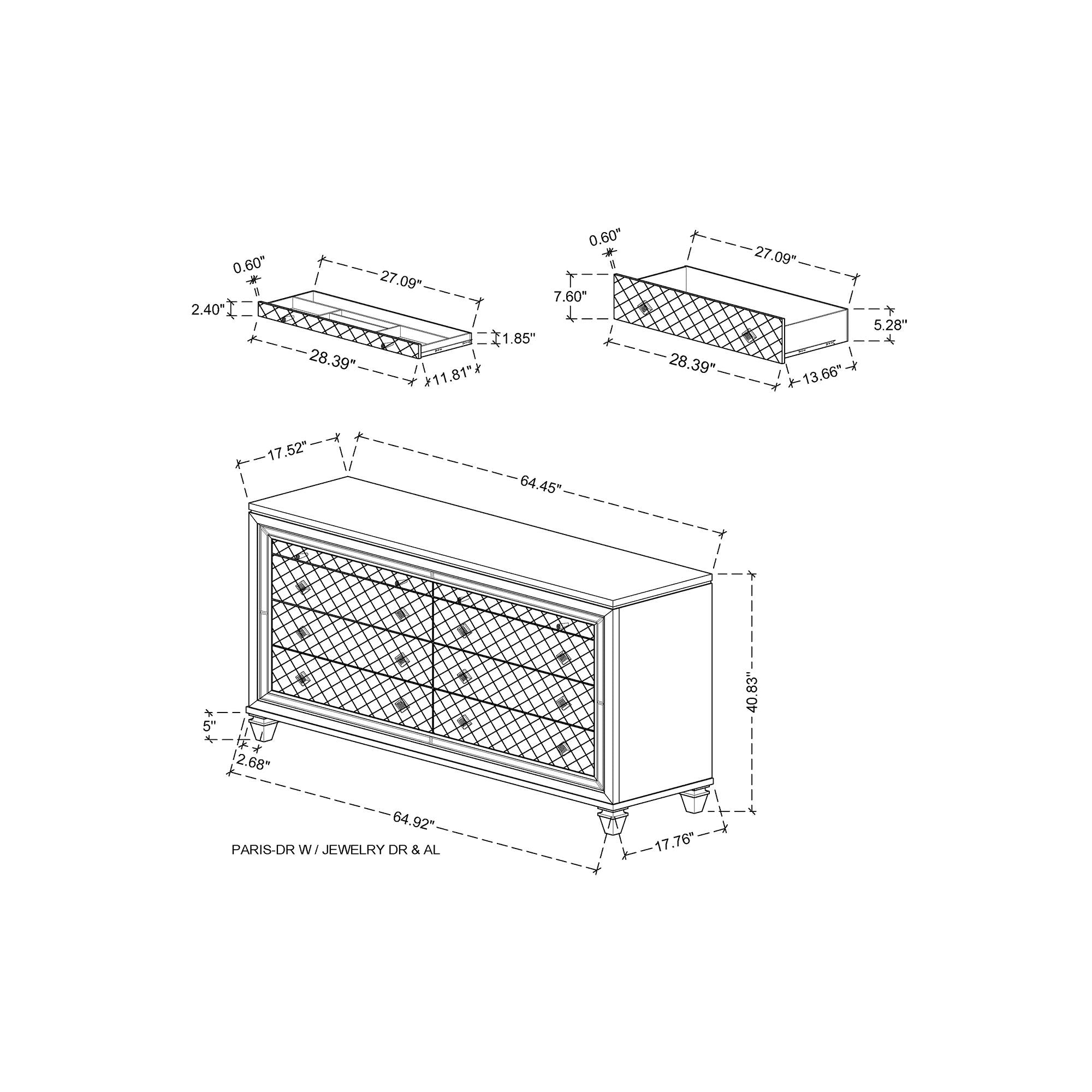 - Elegant Design: Jewel embellished hardware and mirror accents add a touch of luxury.