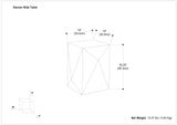 - Features a robust design with a square tabletop and an asymmetric pyramid pattern on the sides.