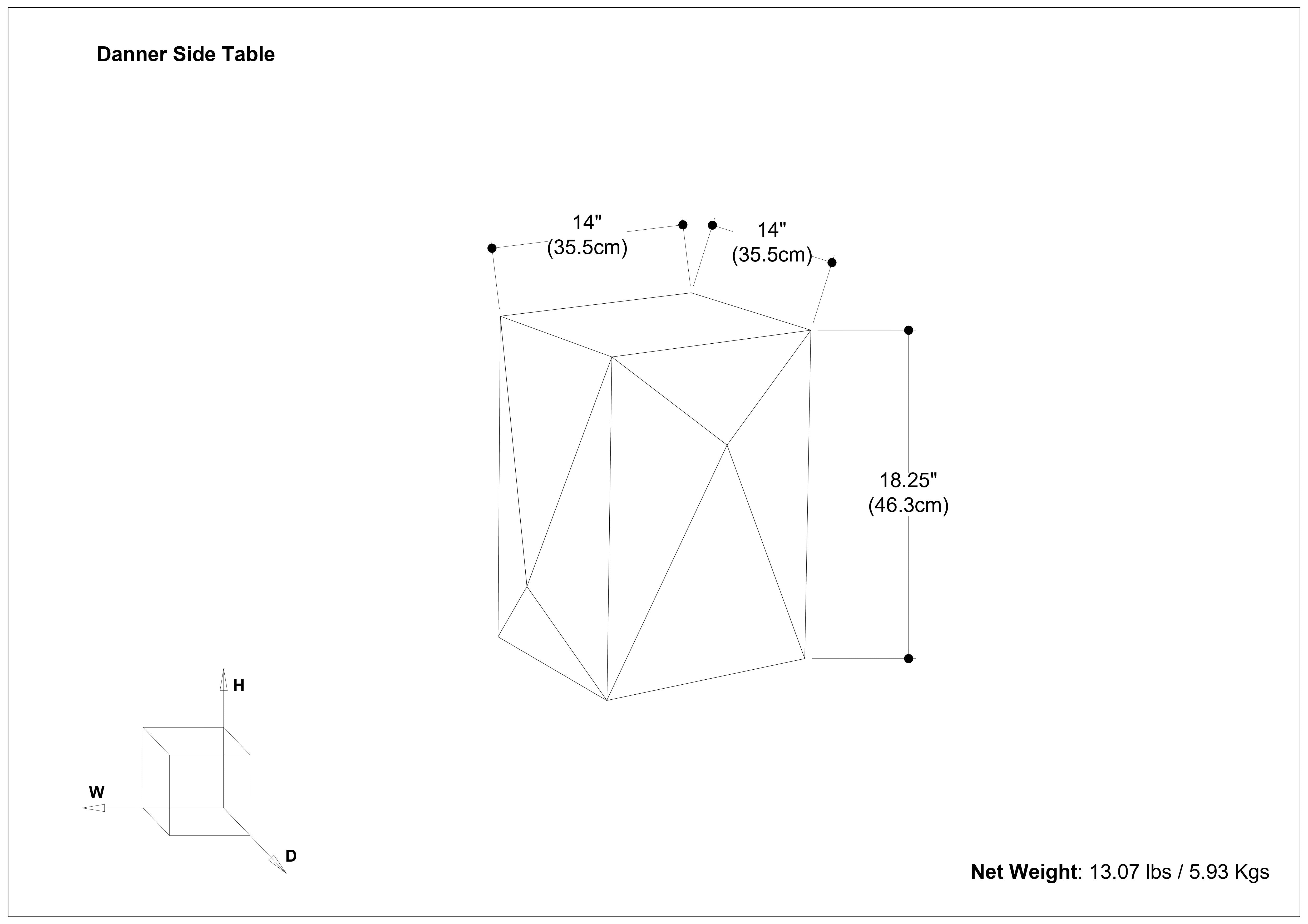 14.0"W x 14.0"D x 18.25"H - 13.1 lb