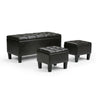 • Features interior storage space with child safety hinge to prevent lid slamming, 3 piece ottoman set includes 1 large rectangular ottoman and 2 smaller ottomans
