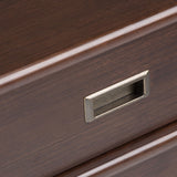 • Features a spacious drawer with metal drawer glides and recessed drawer pull, hardware finish
