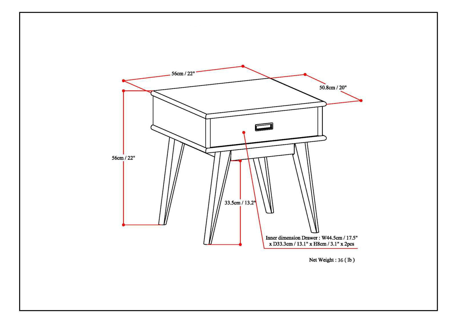 22.0"W x 20.0"D x 22.0"H - 36.0 lb
