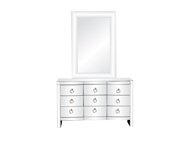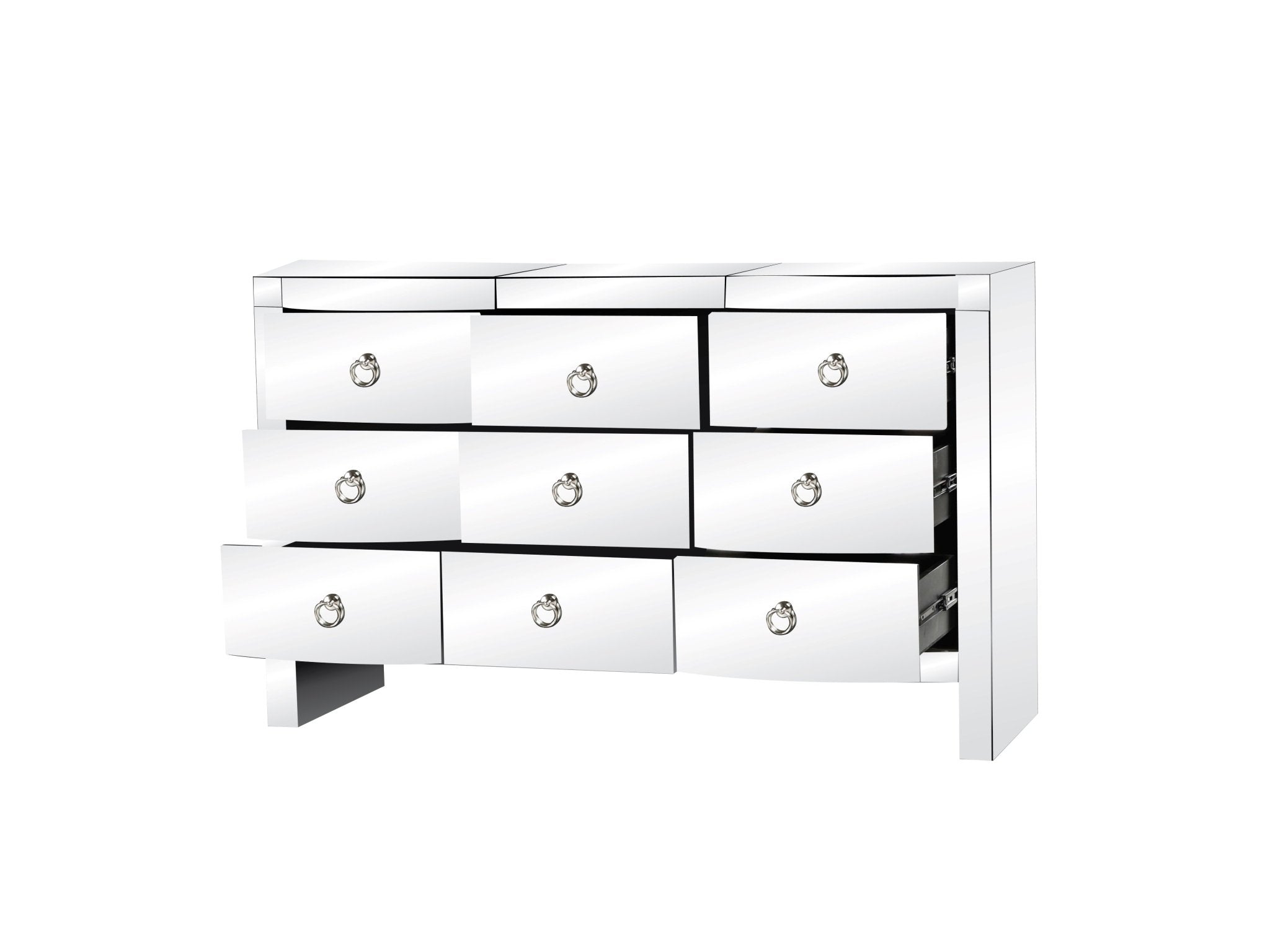 A full mirrored dresser and mirror set is a great addition to any bedroom. It can make your room look more spacious and brighter. The mirrored dresser and mirror set feature mirrored faces that allow you to boldly show your royal personality. Designed with 9 drawers and generous proportions, you will have more than enough space to organize your clothing in style.