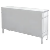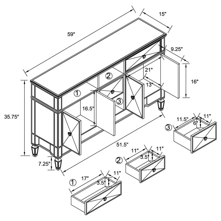 This mirrored accent cabinet has plenty of storage and panache. Fashioned from a combination of materials, it brings modern appeal and convenience to the home. It features birchwood and MDF construction in a silver finish to match the lustrous mirrored accents. Nine mirrored drawers with crystal hardware feature plenty of storage capabilities for all your needs. It's a fine addition to a modern styled living room or entertainment room.