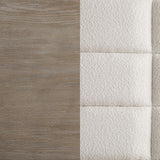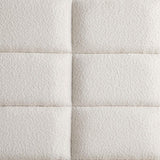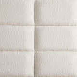 Elevate an inviting master or guest bedroom with the refined flair of this modern upholstered bed. It boasts a wooden frame finish, creating a neutral palette. Cream upholstery is grid tufting, adding to the architectural appeal of this charming bed. The extra-tall headboard is paired with a low footboard, establishing an open, airy presentation in your bedroom. You'll love lounging against its foam cushioning and relaxing in comfort.
