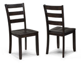 Create a warm and inviting dining space with this timeless dining set, designed to bring elegance and simplicity to your home. The rich, dark wood finish highlights the clean lines and classic design, making it a perfect fit for both modern and traditional interiors. The compact yet spacious table is ideal for family meals, intimate gatherings, or casual dining, while the ladder-back chairs provide sturdy support and comfort with their contoured seats. This versatile set combines style with practicality, making it an excellent choice for small dining areas, apartments, or breakfast nooks. Add charm and functionality to your space with this beautifully crafted ensemble.