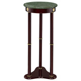 Add a refined touch to any room with this elegant accent table, ideal as a decorative stand or pedestal. A polished green marble top introduces organic texture and visual contrast, while the deep brown wood base provides classic warmth. Gold-tone accents elevate the traditional aesthetic, making it a charming fit for formal living spaces, hallways, or entryways. Built with solid and engineered wood, this compact piece blends timeless design with long-lasting quality.