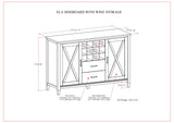 • Features two (2) central drawers with metal glides, two (2) side doors that open to large storage spaces with two (2) shelves each and a twelve (12) bottle wine storage rack.