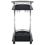 Elfman - 2-Tier Glass Shelf Metal Bar Cart - Black And Chrome