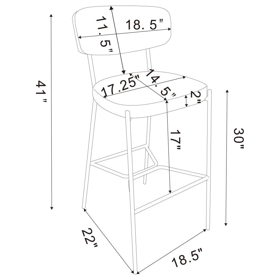 Bar Stool: 18.5" x 22.0" x 41.0", SeatHeight: 30.0, SeatWidth: 17.25, SeatDepth: 14.5, Weight: 13.53